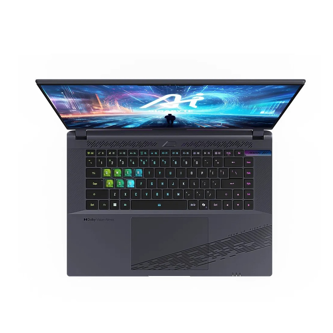 GIGABYTE AORUS 16X – QHD+ 165Hz IPS ეკრანი, Intel i7‑13650HX, RTX 4060 8GB, 16GB DDR5, 1TB SSD, USB‑C, Wi‑Fi, Bluetooth და ფერადი კლავიატურა. შესანიშნავი შესრულება გეიმინგისთვის და კონტენტის შექმნისთვის.
