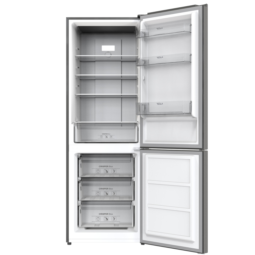 Tesla RC3200FHXE არის 293 ლიტრიანი კომბინირებული მაცივარი, რომელიც გამოირჩევა თანამედროვე დიზაინითა და მაღალი ფუნქციონალობით. მისი Total No Frost ტექნოლოგია უზრუნველყოფს ავტომატურ გალღობას, რაც ამცირებს მოვლის საჭიროებას. მოწყობილობა აღჭურვილია LED განათებით, რეგულირებადი მინის თაროებითა და ხილისა და ბოსტნეულის შენახვის სპეციალური უჯრით, რაც ხელს უწყობს პროდუქტების სისუფთავესა და სიგრილეს.